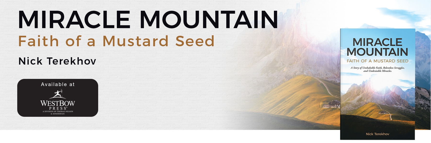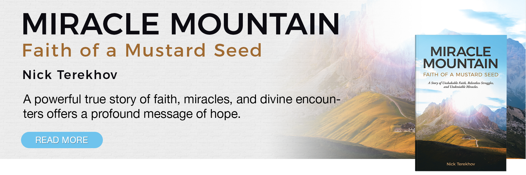 Nick Terekhov writes with raw honesty, vivid storytelling, and steadfast faith. Through personal struggles, divine encounters, and unwavering beliefs, he challenges readers to trust God’s plan, proving that faith—no matter how small—moves mountains. Miracle Mountain: Faith of a Mustard Seed is his first book.
